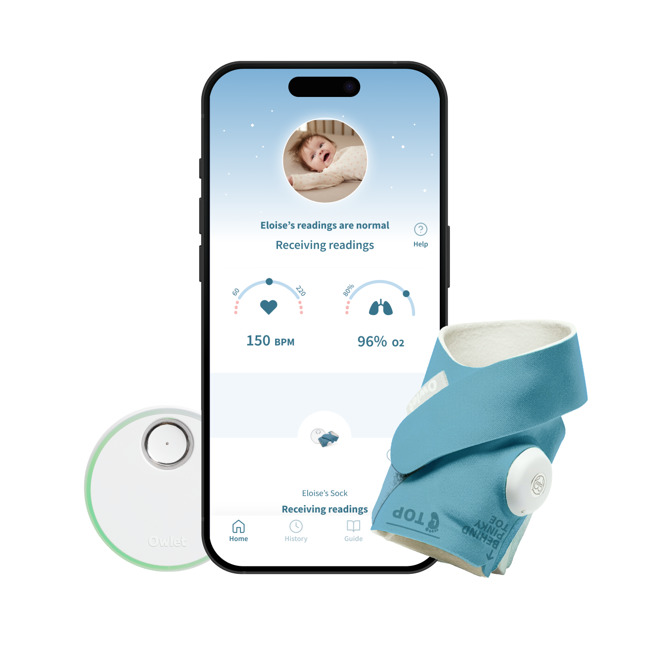 BabySat pulse oximeter combines medical-grade accuracy with Owlet's easy-to-use, wire-free sock design to support your infant’s medical needs at home.
